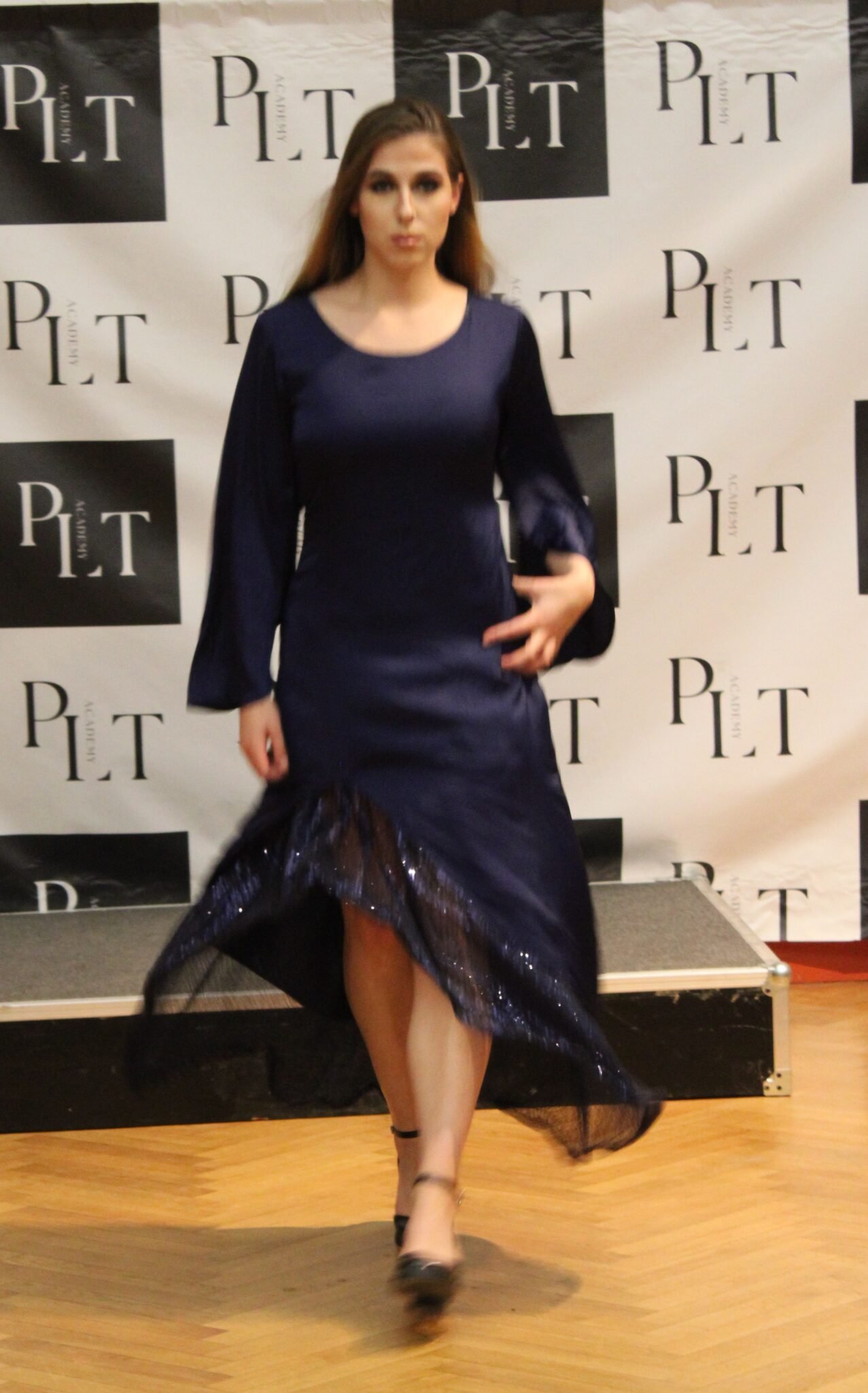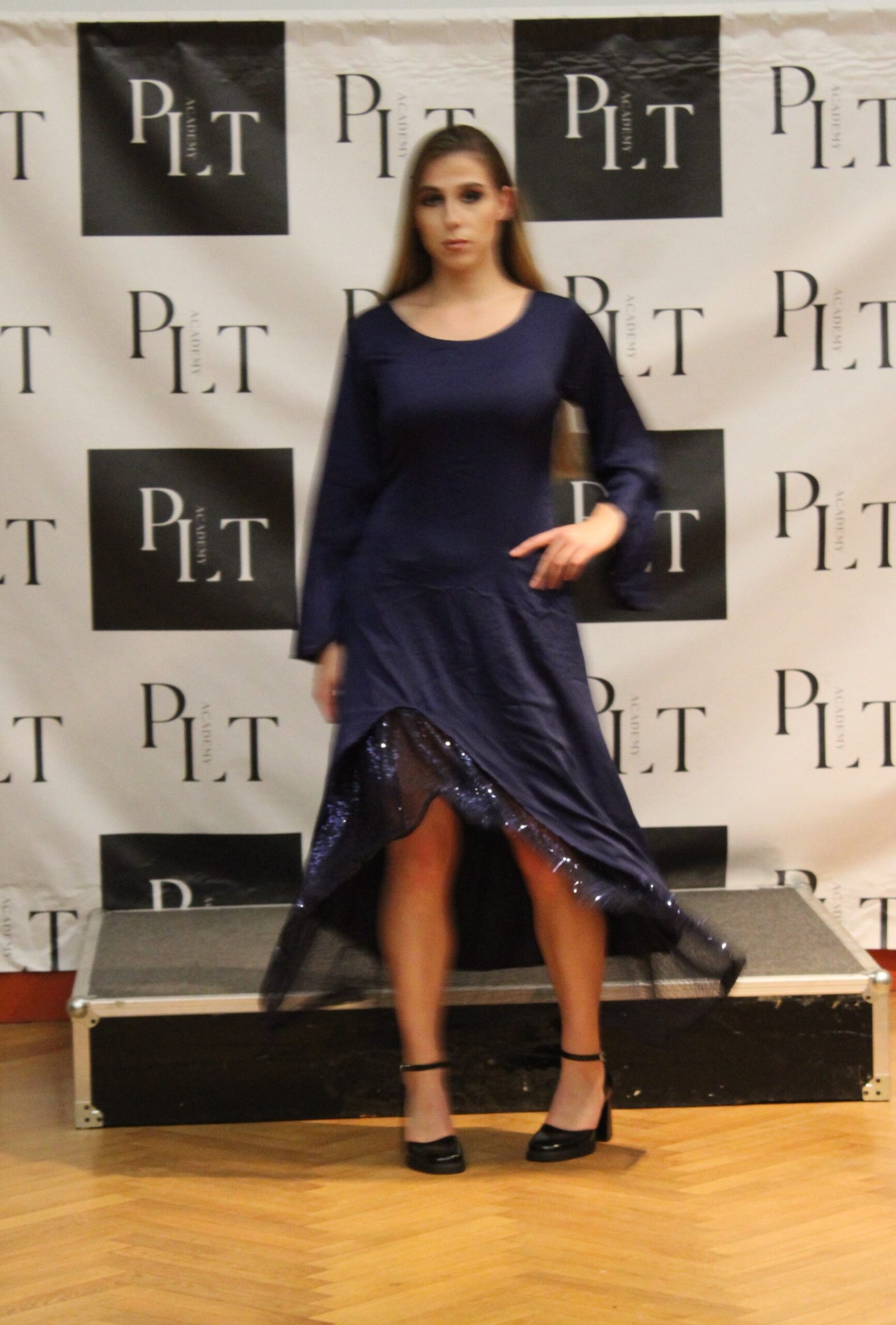Monochrome et originale, le bi matière surprend et enivre avec ses paillettes en volants, tout en restant traditionnel et sobre. Le montage est spectaculaire avec des cerceaux, maintenant un arrondi virevoltant.
